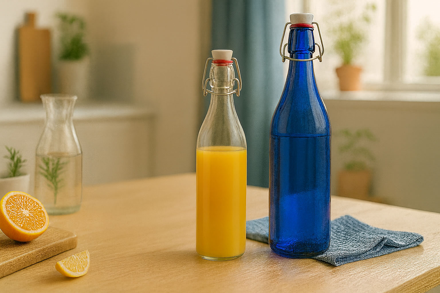 Bormioli Rocco 1.000 ml cam şişe 'Giara', mavi, ağız: mandallı kapak