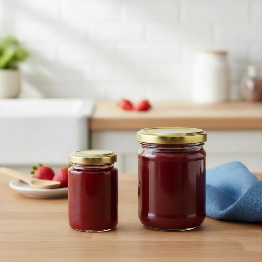 Flaschenland'ın "Yuvarlak Cam" ürün serisi, özellikle yüksek işlevselliği ve sağlamlığı ile öne çıkan çok yönlü 320 ml yuvarlak cam kavanozları (Twist-Off ağız, TO 66) ile dikkat çekiyor. Bu cam kaplar, çeşitli gıdaların güvenli ve hijyenik şekilde saklanması için idealdir. Yuvarlak cam kavanozlar, mikrodalga ve fırına dayanıklı, yüksek kaliteli ısı ve soğuk dirençli camdan üretilmiştir. Böylece yiyeceklerin hazırlanması, saklanması ve korunması için mükemmel bir seçimdir. 320 ml hacmiyle reçel, bal, pesto, turşu ve diğer lezzetler için yeterli alan sunar. Twist-Off ağız (TO 66) kolay ve güvenli kapanma sağlar. Kavanozlar bulaşık makinesinde yıkanmaya uygundur.