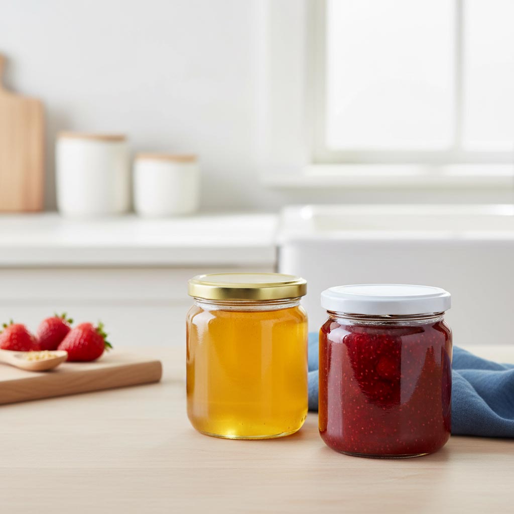Flaschenland'ın "Yuvarlak Cam" ürün serisi, özellikle gıda maddelerinin güvenli ve pratik saklanması için tasarlanmış, çok yönlü 408 ml yuvarlak cam kavanozu Twist-Off ağız (TO 82) ile öne çıkıyor. Bu ürün ailesinin temel özelliği, sağlam cam tasarımı ile evde çok yönlü kullanımın birleşimidir. Yuvarlak camlar, soğuğa dayanıklı, ısıya dayanıklı ve mikrodalga fırına uygun yüksek kaliteli cam işçiliği ile dikkat çeker ve ayrıca bulaşık makinesinde ve fırında kullanılabilir. 408 ml hacmi ve güvenilir Twist-Off ağız (TO 82) ile hava geçirmez sızdırmazlık sağlar, bu da bal, reçel veya diğer gıdaların korunması için idealdir. Şeffaf cam, içeriğin kolayca kontrol edilmesini sağlar.
